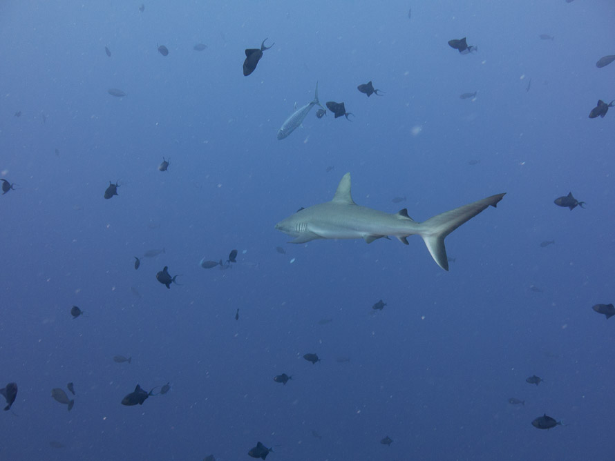 Black tip reef sharks and cool looking black fish (don't know the name).